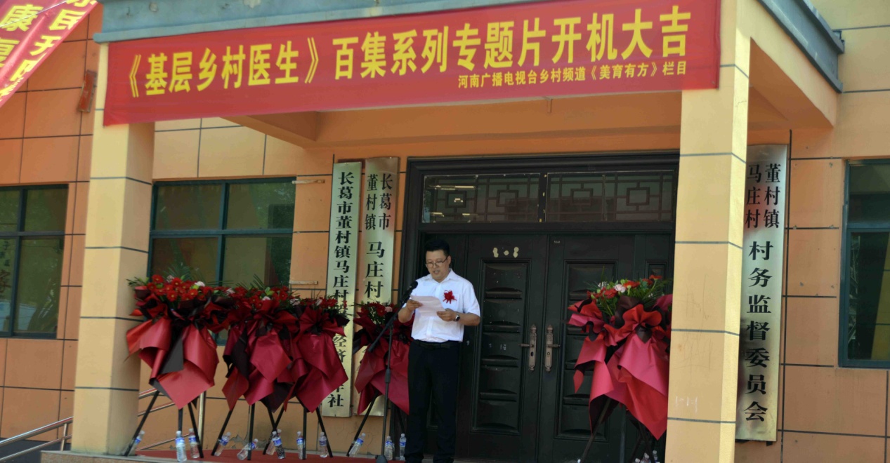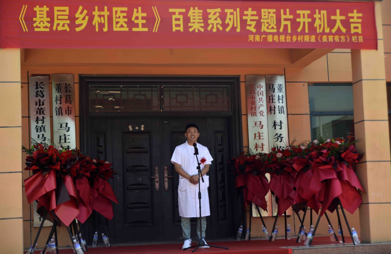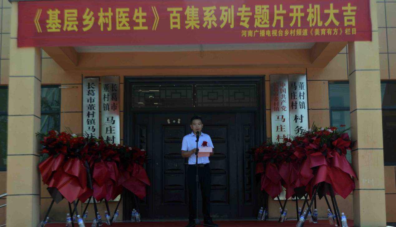 长葛市董村镇马庄村支部书记王相民首先上台致辞:《基层乡村医生》百集系列专辑片的开机表示热烈祝贺,并期待这一作品能够真实记录基层乡村医生的辛勤付出和无私奉献,展现他们守护乡村百姓健康的感人故事。