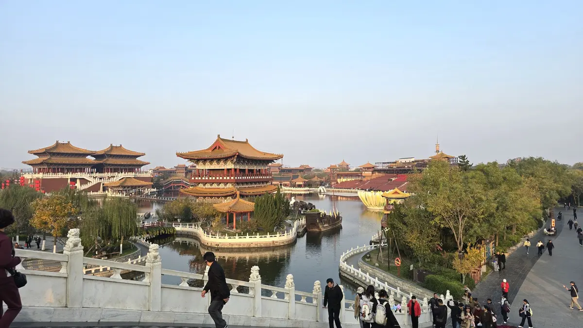 不觉间,行至此行首要景点——清明上河园,此处亦是开封盛事菊花节的主展场。各展馆中千姿百态、姹紫嫣红的菊花争奇斗艳,美不胜收,堪称全球菊花尽聚于此。笔者心中,花魁当属开封经千次试验培育出的“七彩炫菊”,其色彩斑斓,宛如彩虹。当然,审美各异,犹如燕瘦环肥,浓淡清雅各有所爱。
